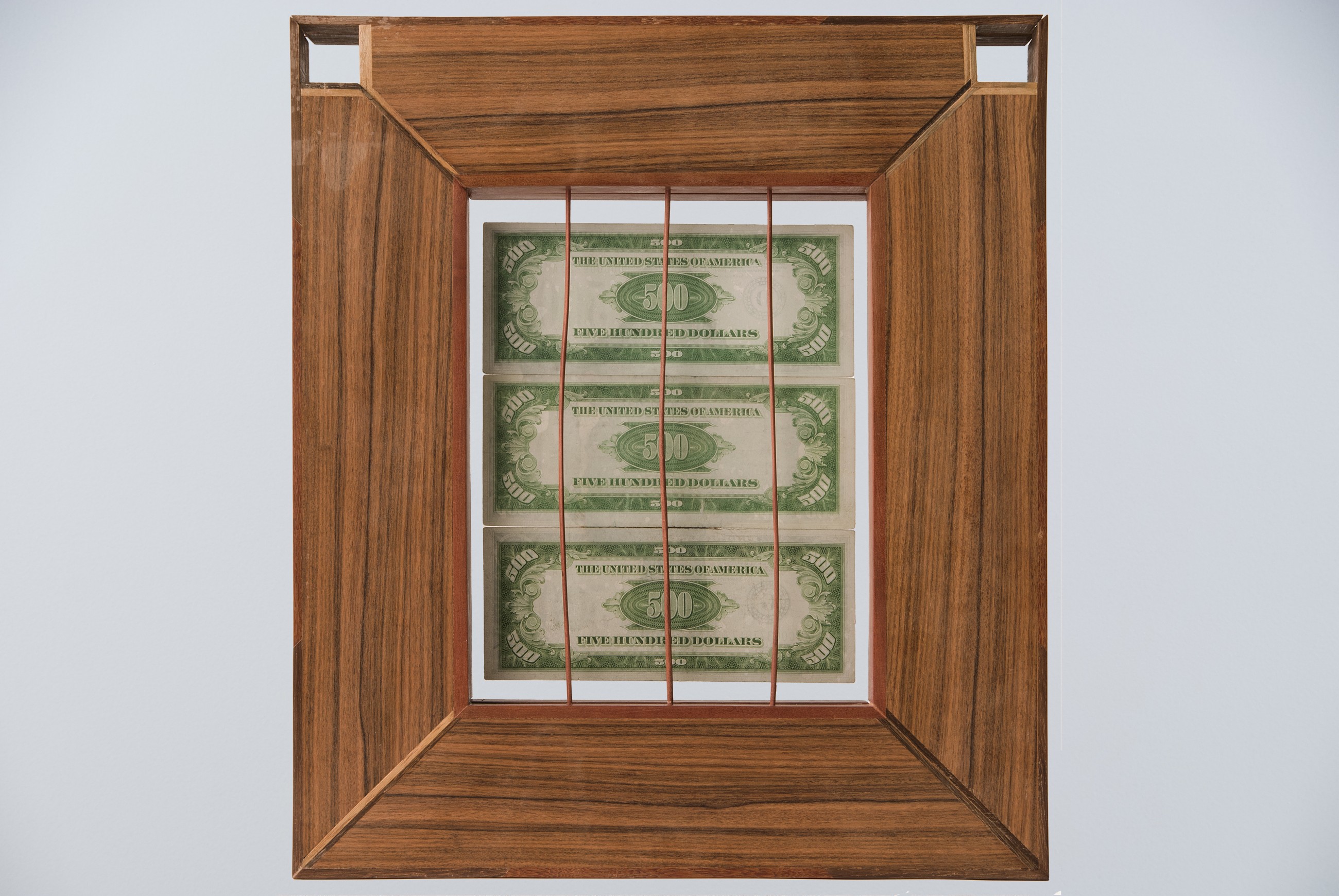 - Oil on Currency, Madagascar Rosewood, Pink Ivory, Leopard Wood.